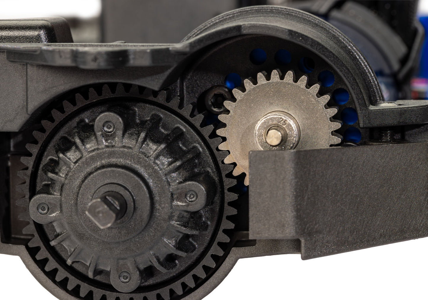 - 1/10 Scale 4X4 Driveline - Adding 3s Velineon power to a compact platform requires bold engineering. Mini XRT comes outfitted with the proven driveline components of Traxxas’ toughest 1/10 scale 4X4 trucks. Front, center, and rear steel-gear differentials, along with 32-pitch gearing and HD driveshafts, far exceed requirements for strength and long life.