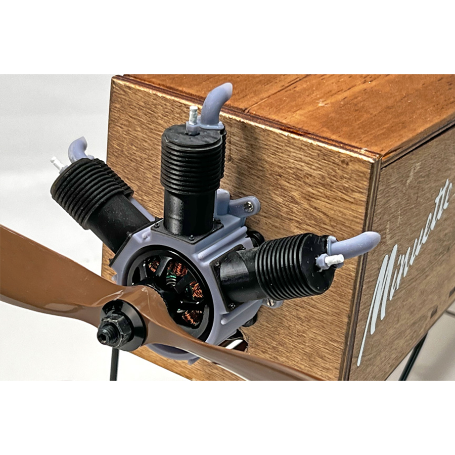 - Ready-to assemble 3d printed dummy motor (based on the Anzani "W" 3-cylinder). It is designed and printed by Innov8tive Designs, and meant to slip over your electric motor, mounting to the firewall.