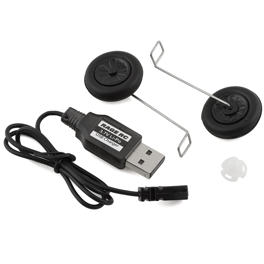 Everything needed to start flying is included in the box; including a 2.4GHz standard size 4-channel transmitter, a pre-installed airborne electronics system, a convenient USB charger, and a powerful 3.7V 400mAh LiPo battery for extended flight times of up to 15 minutes. The only items you need to add are four AA batteries for the transmitter and you'll be flying sorties around your local park within minutes of opening the box!