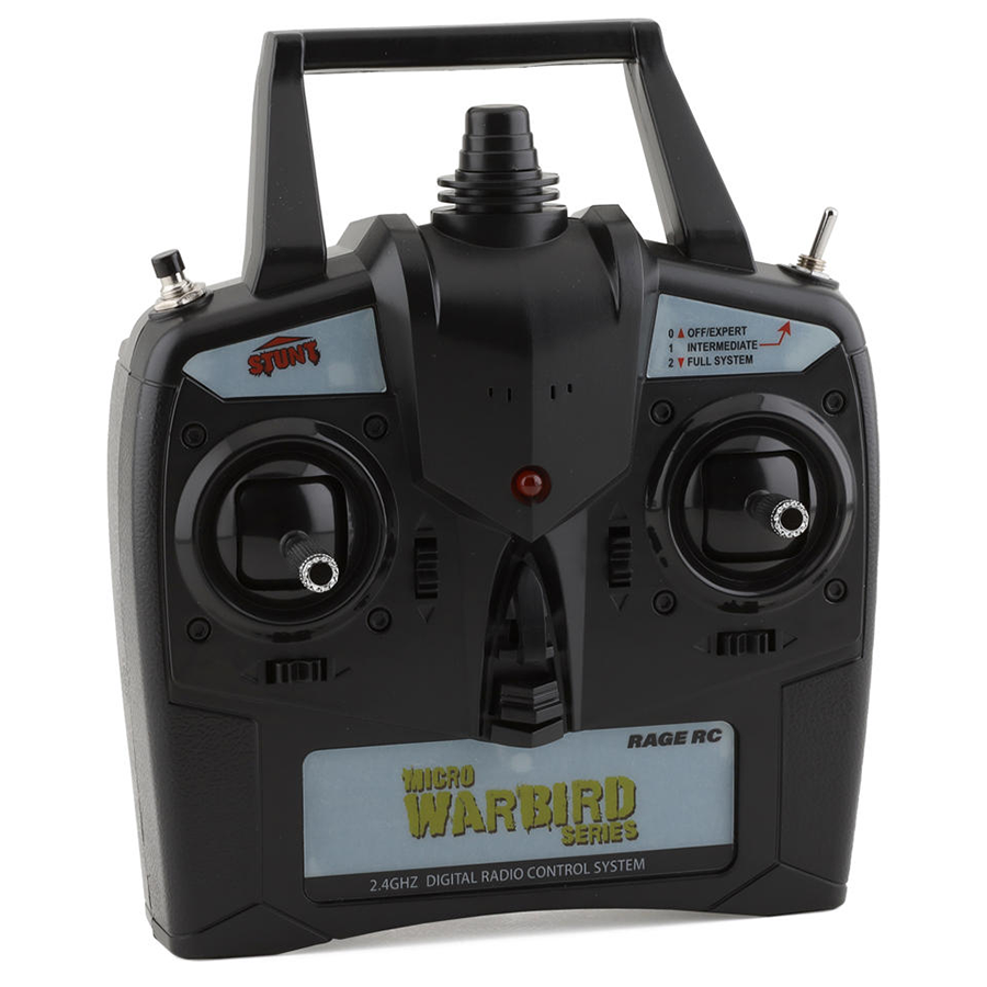 - Stunt button on transmitter for aerobatics like loops and rolls