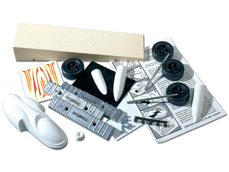 Use template provided to add pre-fabricated canopies, spoilers and other three-dimensional designer body details to the pre-cut Wedge. Wheels and axles should be the same on all cars in a race.
