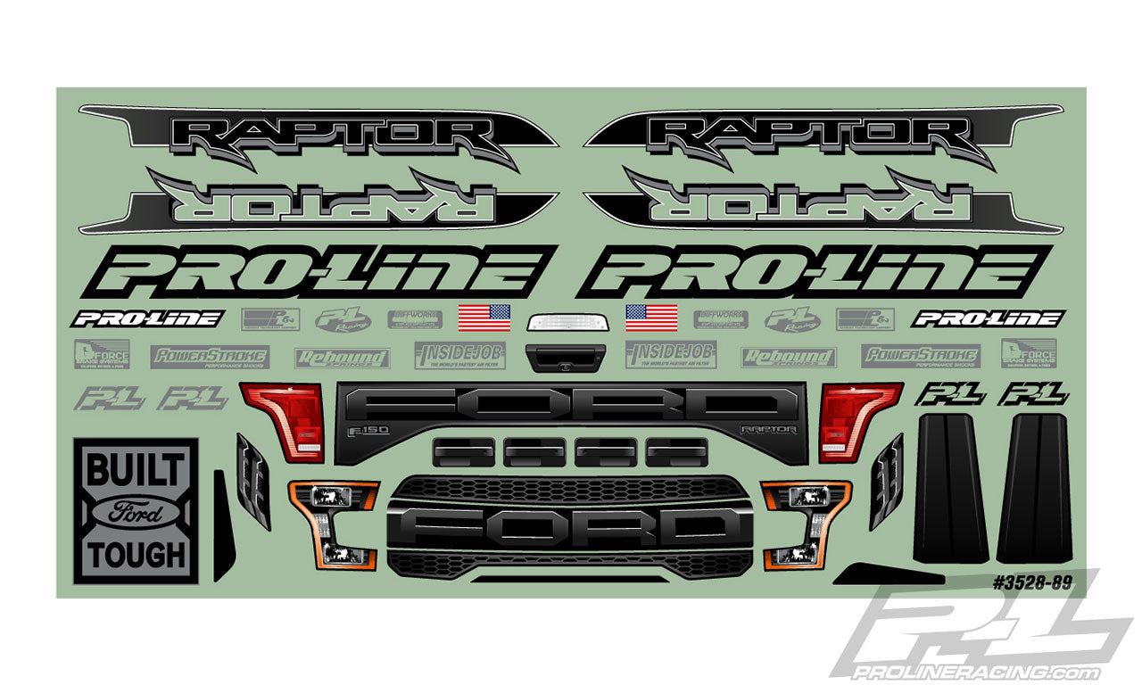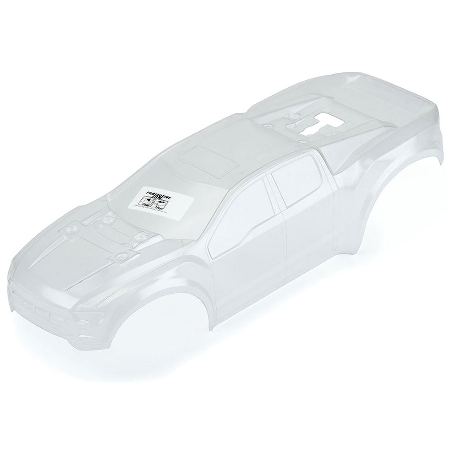 This is a Pro-Line 2017 Raptor Clear Body for Rustler® 4x4. Introducing one of the most anticipated Truck bodies, the new 2017 Ford® F-150 Raptor truck body for the Rustler® 4x4! Pro-Line's detailed and functional replica includes all the rugged Raptor style and attitude that you want and expect while being a direct fit onto the stock cage and body mounting system.