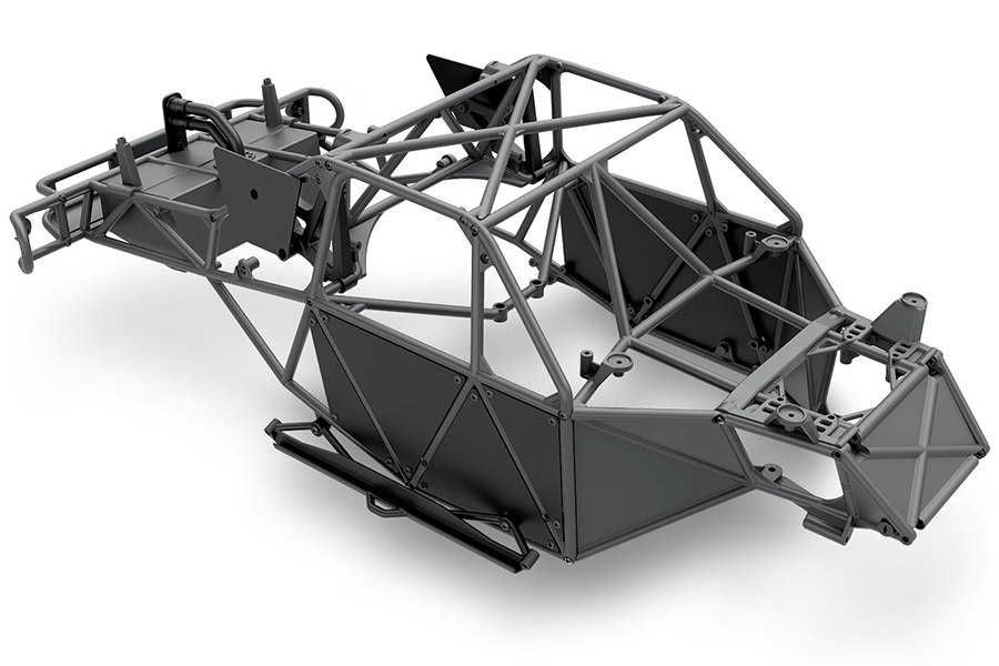 The beautifully sculpted tube framework integrates fully with the chassis and suspension to form an incredibly strong, lightweight structure for the shocks and suspension components to mount. The realistic design even includes the “tin” panels so the race chassis looks just as good with the body off for pre-race practice runs.