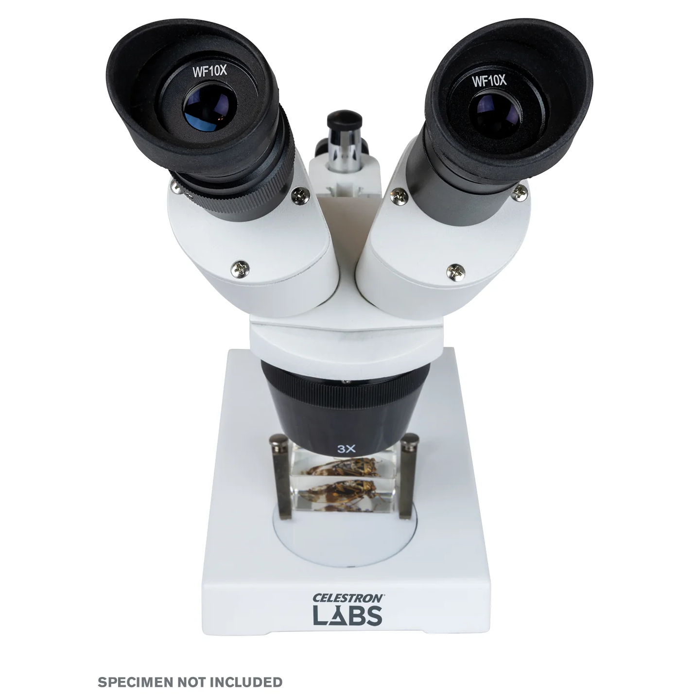 The Celestron Labs S10-30N Stereo Microscope is the perfect specialized stereo microscope. With adjustable low-power 10x and 30x magnification, this stereoscope produces a 3D image of your specimen. It’s ideal for observing subjects like insects, rocks, leaves, fossils, and more.