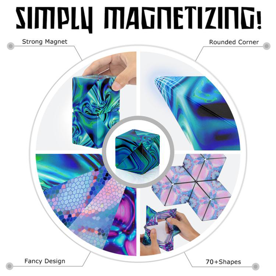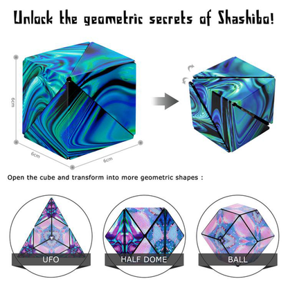 Unlock the mystery of Shashibo! Each Shashibo is powered by 36 rare earth magnets. 1 cube transforms into over 70 shapes. Combine 2 or more Shashibos to build larger shapes and create more possibilities. Can you master the shape shifting box?