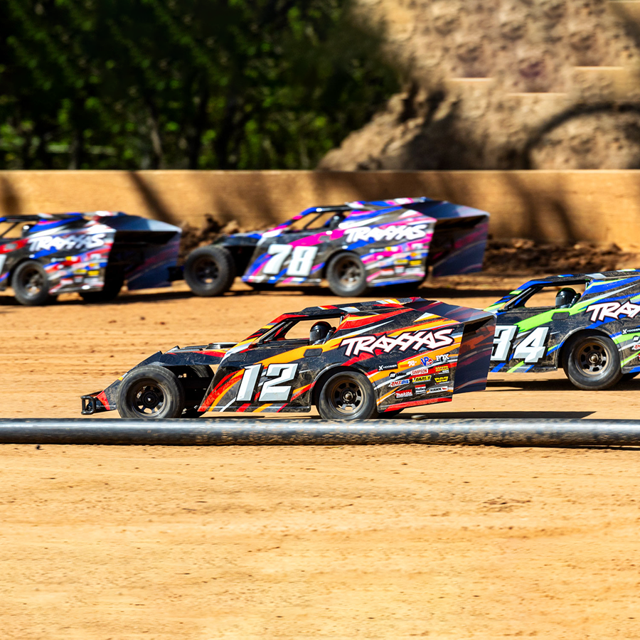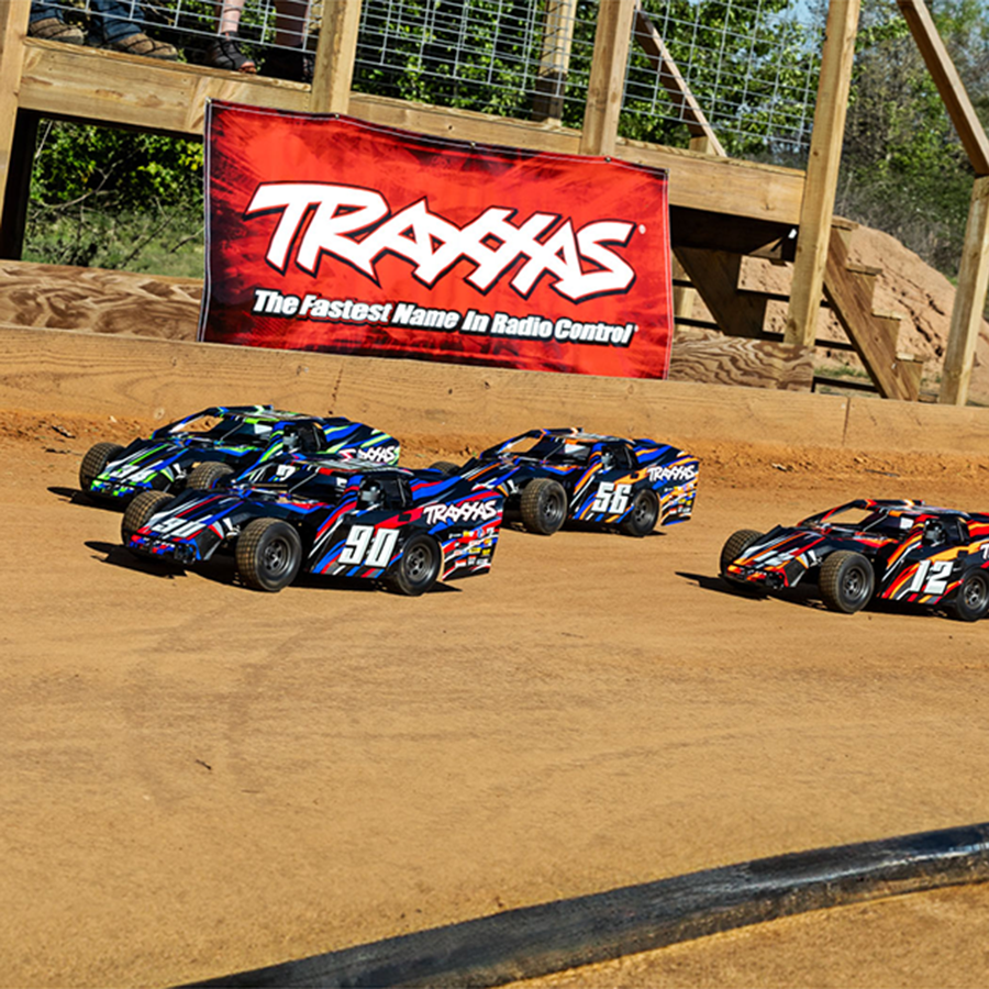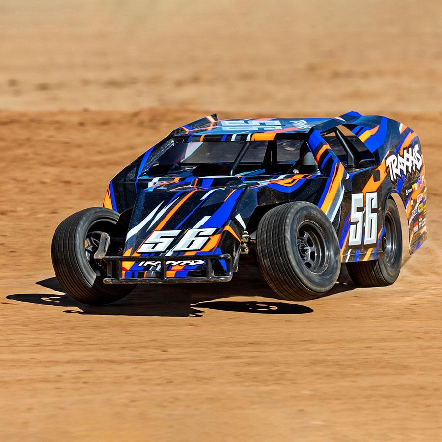 The Slash® Mudboss dirt oval racer is engineered to deliver competition-tuned track performance right out of the box. Slash’s already legendary durability has been enhanced with new Extreme Heavy Duty suspension components and performance upgrades such as aluminum GTR shocks, Magnum 272R™ transmission, tough clipless body, and the fast and reliable BL-2s™ brushless power system.