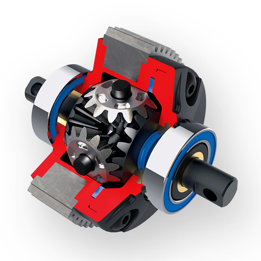 The heavy duty steel-gear differential is X-ring and gasket-sealed and filled with grease for all-around performance. It’s easy to tune the differential's locking action by adding different viscosity silicone oil to suit track conditions.