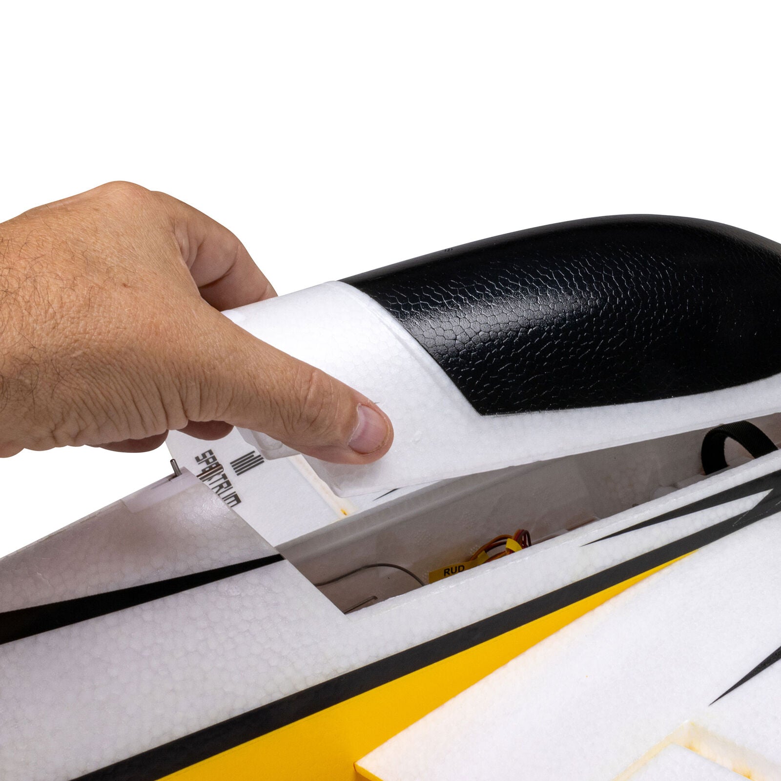 Yet it's also conveniently sized to be easy to store and transport without disassembly – and so it can be flown at large parks and sports fields as well as RC flying fields. Factory-installed digital and metal-geared servos with ball-link equipped linkages provide precise and reliable control at every speed. The power system includes a Spektrum outrunner motor and an Avian 45-amp Smart Lite ESC that are compatible with popular 3S and 4S 2200-3200mAh batteries. And the BNF Basic version is equipped with a factory-installed Spektrum AR631+ receiver featuring exclusive and enhanced AS3X+ along with optional-use SAFE Select technologies.