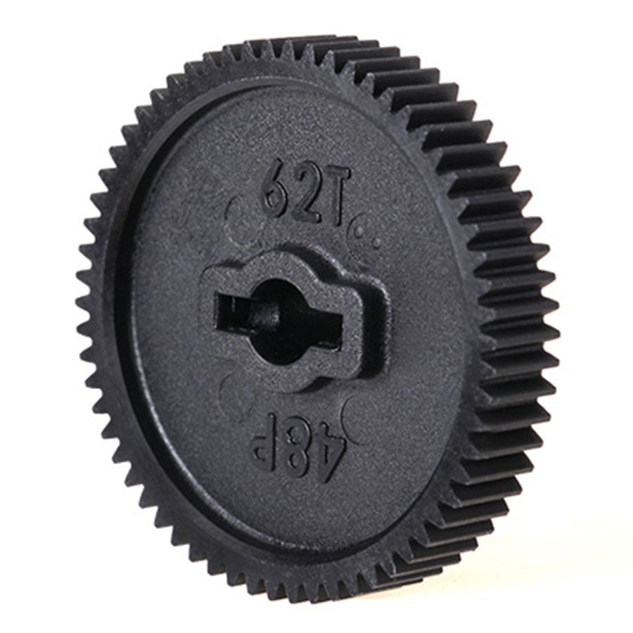 62-tooth spur gear (48-pitch). Traxxas spur gears let you fine-tune the performance of your Traxxas model. Changing gear ratios can help balance acceleration and top speed for different running conditions. Please consult your owner’s manual for more information on recommended gearing options for your specific model.