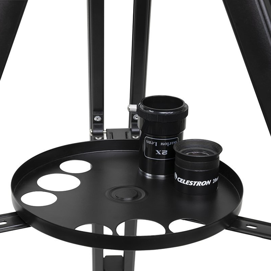 - Includes 10 mm and 25 mm eyepieces, 2x Barlow lens, smartphone dock, image diagonal, red dot finderscope, and full-height tripod