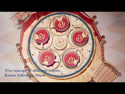 ROKR Tilt-A-Whirl EA04 is a DIY music box 3D wooden puzzle kit of the Magic Amusement Park Series. The design is based on the classic spinning teacups of the current major amusement parks, with the outer decoration of the gypsy circus tent in the 18th century, presenting the amazing charm of time and space.