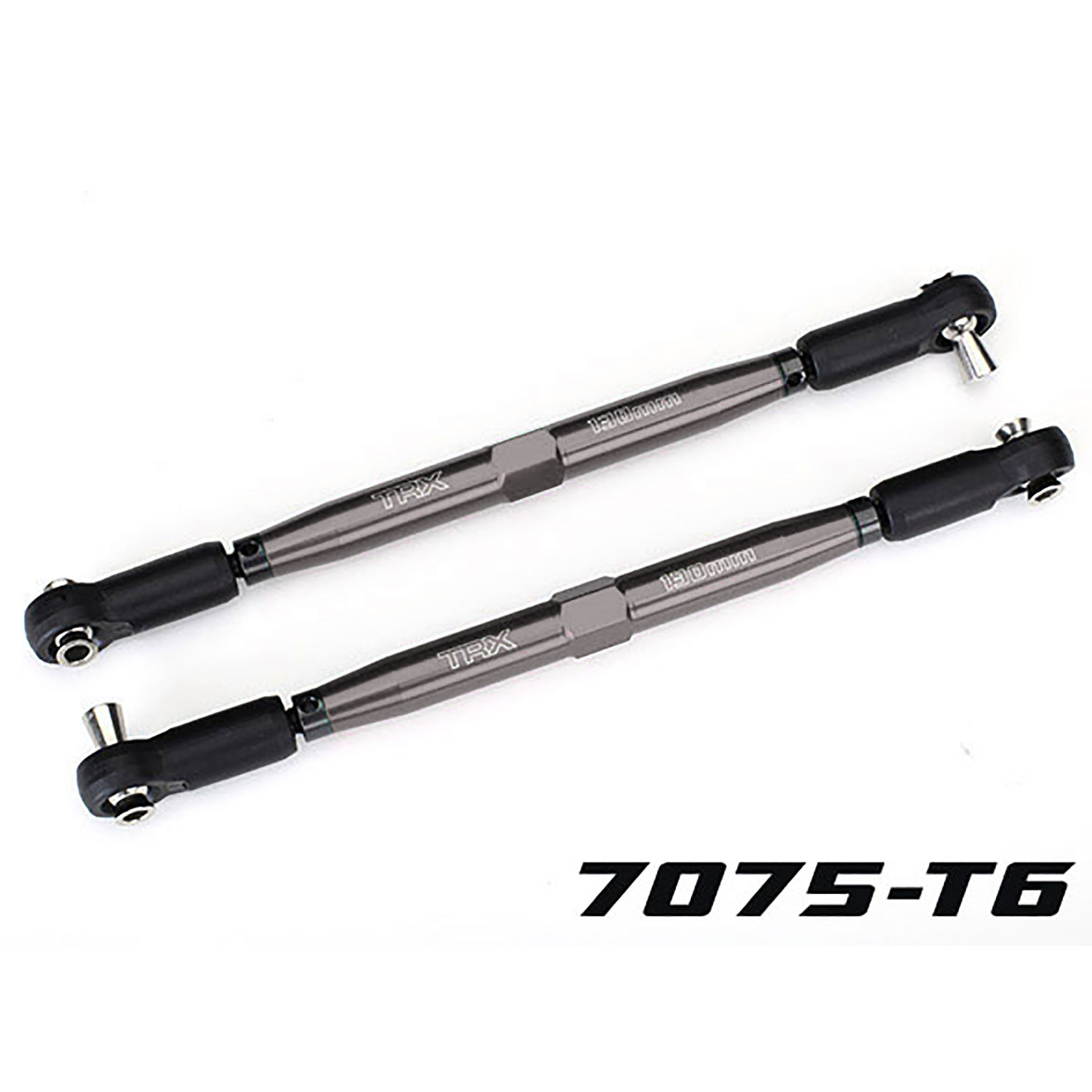 Toe links, X-Maxx® (TUBES gray-anodized, 7075-T6 aluminum, stronger than titanium) (157mm) (2)/ rod ends, assembled with steel hollow balls (4)/ aluminum wrench, 10mm (1).