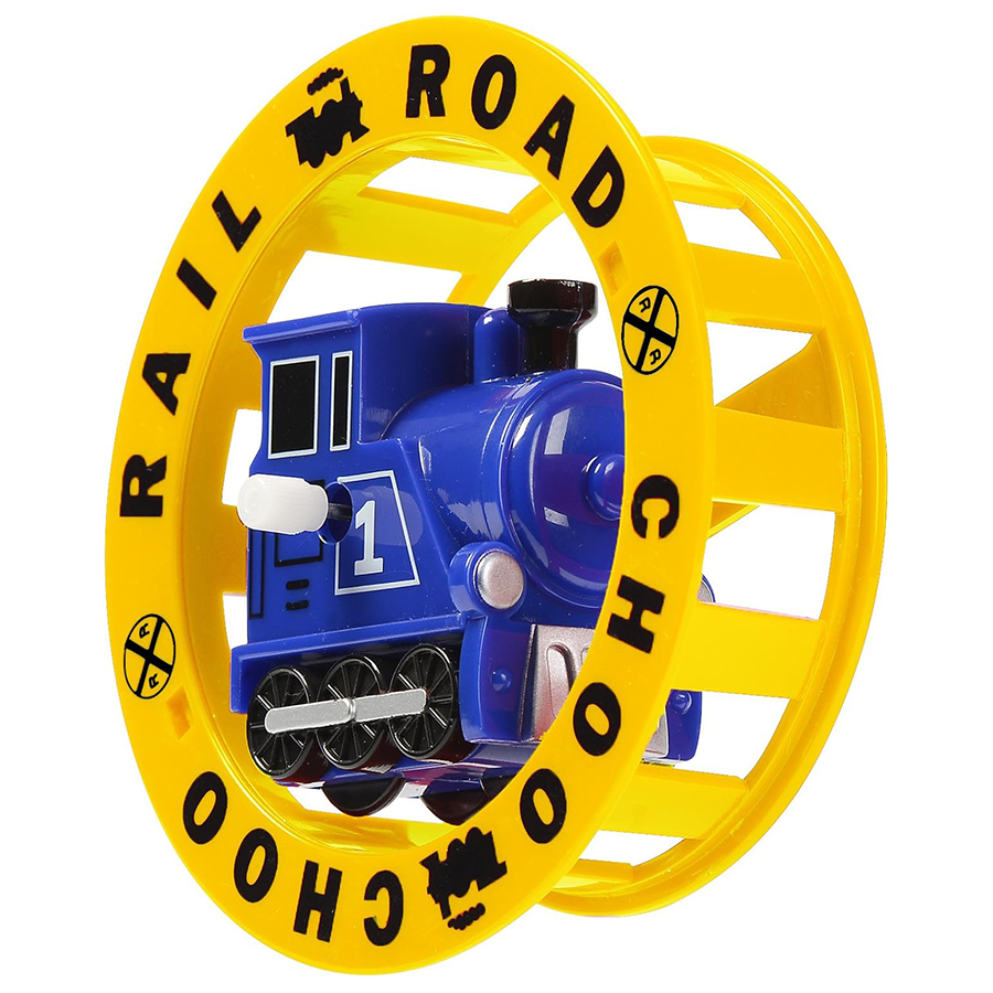 Aeromax Wheely Rollers Choo Choo Rail Road Wind Up Toy. This toy can be played 3 ways, wind up and it goes in a circle, twist and remove outer ring and it rolls straight or pull train gently from wheel and it rolls by its self. Great toy for hours of fun no batteries.