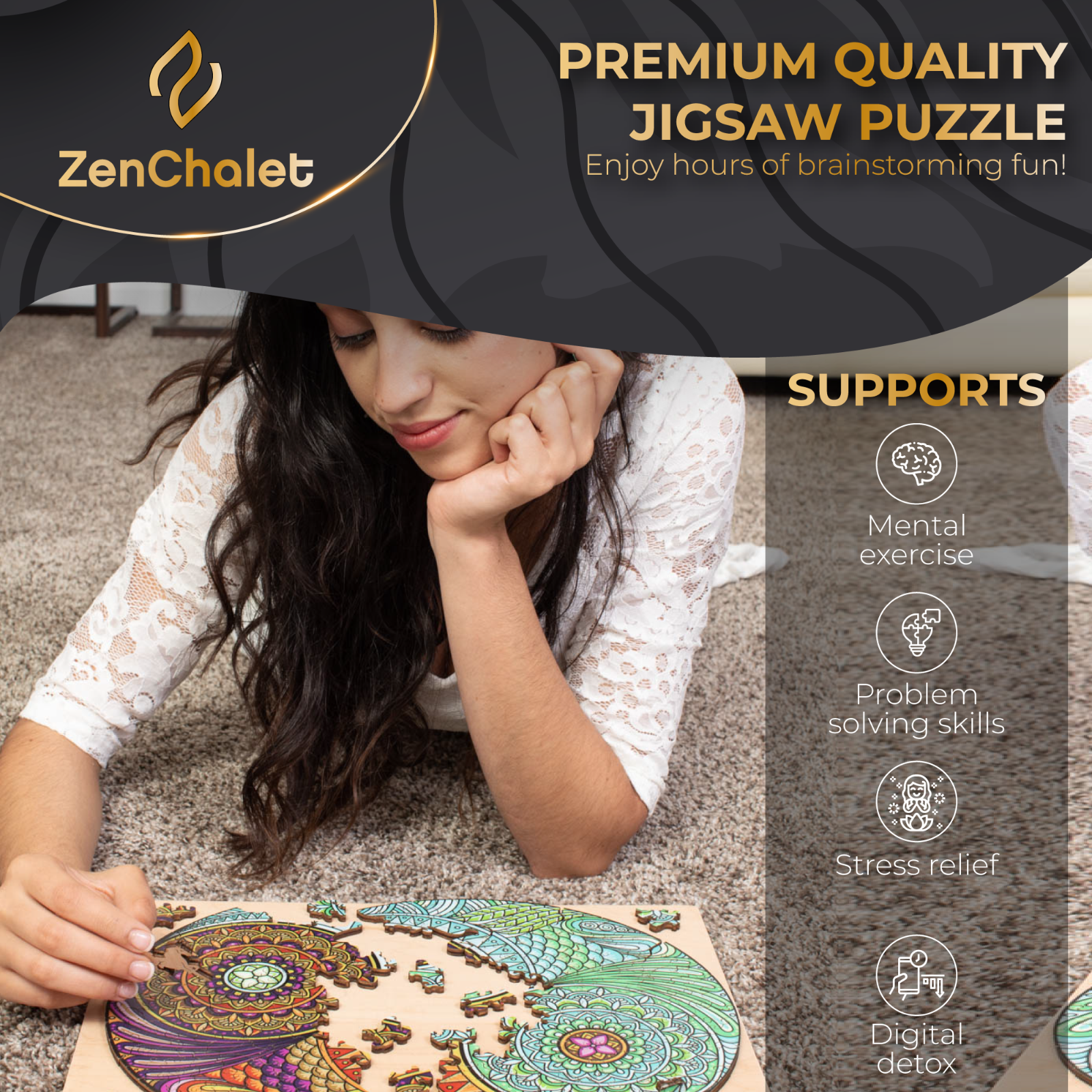 A home decoration in the making, our adult puzzle comes with precision cut interlocking wooden pieces that snap tightly into place; Easy to lift without falling apart to display as wooden wall art adding colors and texture to any home decor - truly unique jigsaw puzzle to brighten up any room.